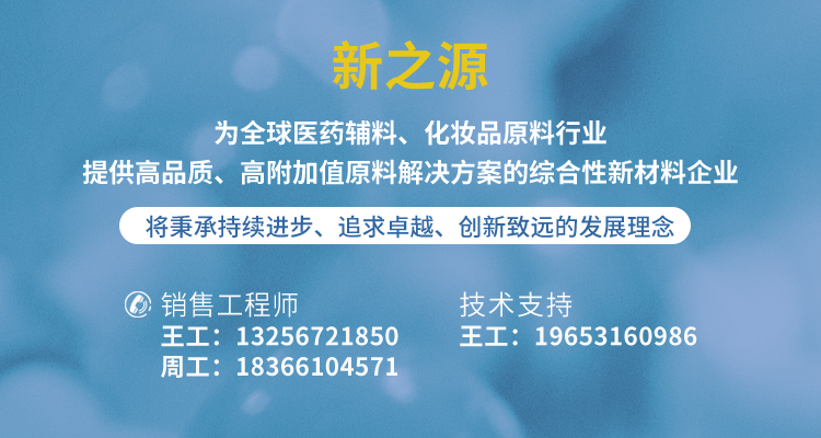 創新之源,未來之力!新之源將繼續秉承持續進步、追求卓越、創新致遠的發展理念,攜手全球合作伙伴共同推動醫藥輔料、化妝品原料及新材料行業的進步與發展。為人類的健康與美麗事業貢獻更多的力量與智慧。